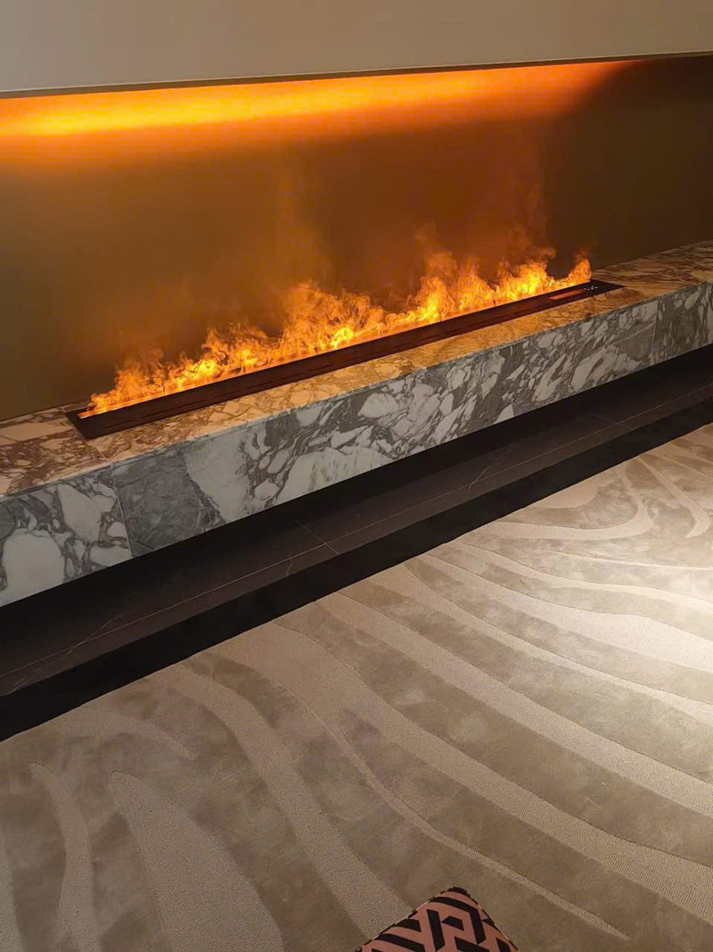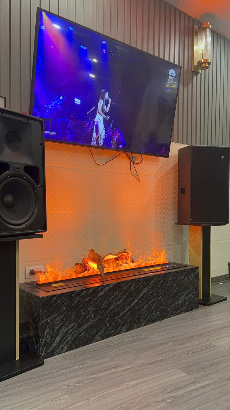 Lò sưởi hơi nước 4D sử dụng công nghệ siêu âm để nguyên tử hóa các phân tử nước, từ đó tạo ra hiệu ứng ngọn lửa và khói, thích ứng với mọi không gian, tạo ra trải nghiệm như với lò sưởi thật. Bạn có thể chạm tay vào “ ngọn lửa” vì nó mát dịu và 100% an toàn.