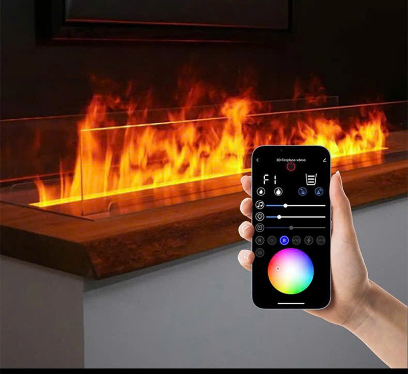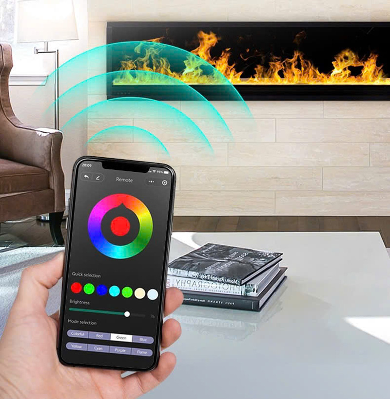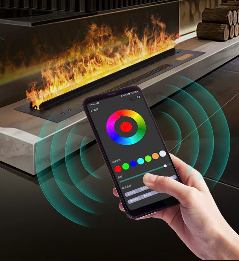 Lò sưởi hơi nước 4D 1 màu, nhiều màu sử dụng Remote, đa màu điều khiển qua App Mobile Phone