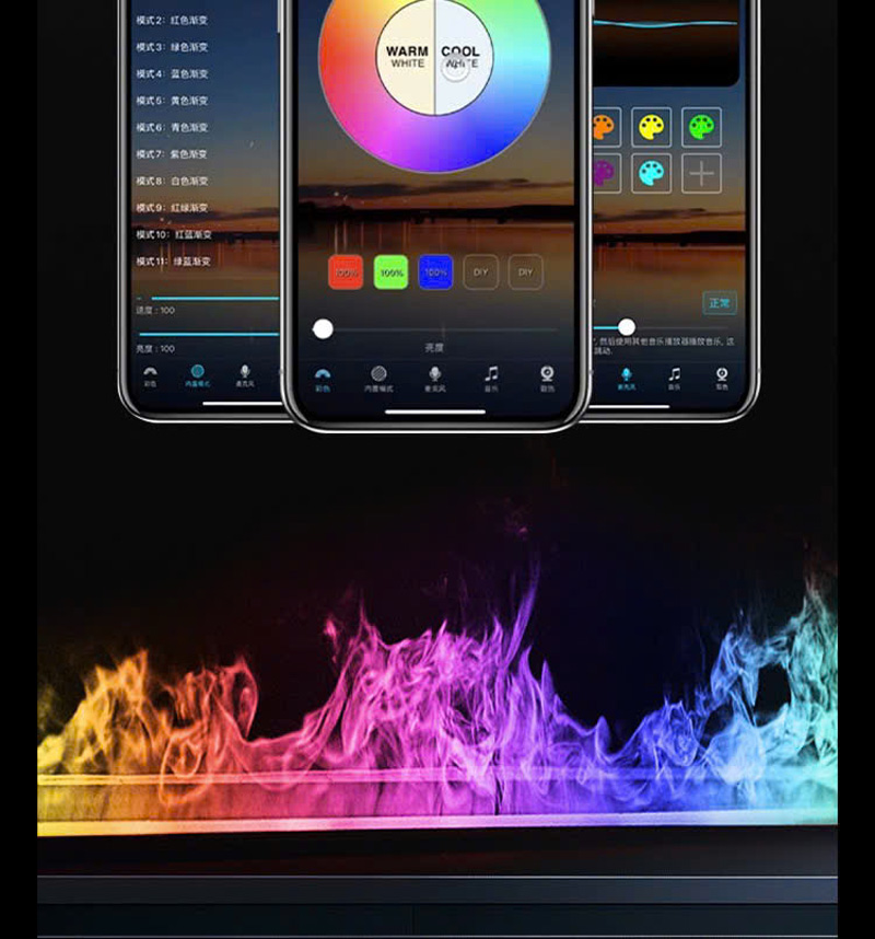 Đối với mẫu lò sưởi 4D trang trí sẽ có thể điều chỉnh màu của ngọn lửa bằng ứng dụng điện thoại. Bạn có thể đổi sang màu sắc yêu thích tùy ý. Đèn hiệu ứng sẽ có công tắc bạn cần bật lên khi sử dụng và tắt đi khi không muốn dùng. Đồng từ độ cháy của ngọn lửa cũng có thể tăng giảm bằng nút hiển thị. thông thường sẽ có 7 chế độ thay đổi khác nhau.