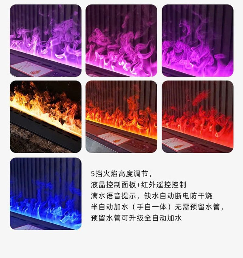Mẫu lò sưởi hơi nước 4D nhiều màu sử dụng điều khiển từ xa Remote, đa màu điều khiển qua App điện thoại