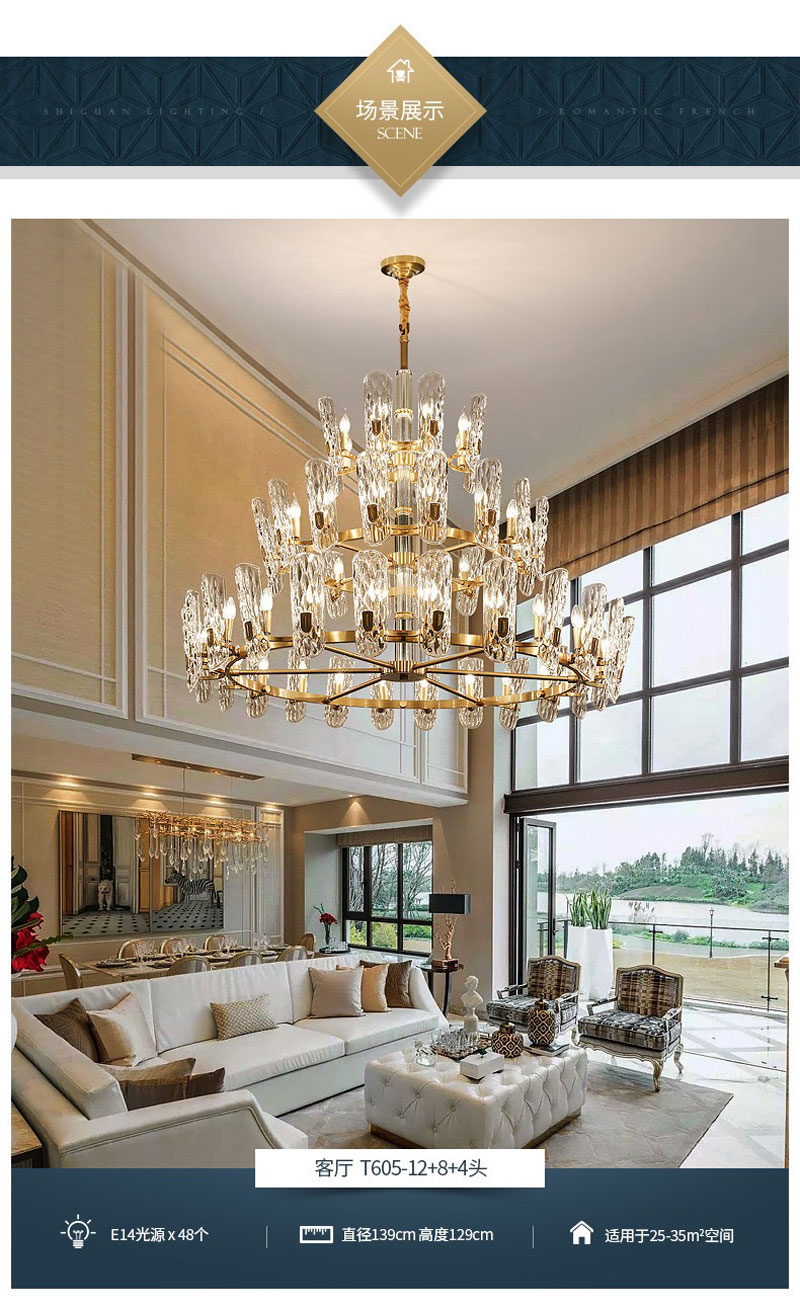 Thông số kỹ thuật của sản phẩm Đèn chùm cao cấp trang trí nội thất biệt thự DC 042