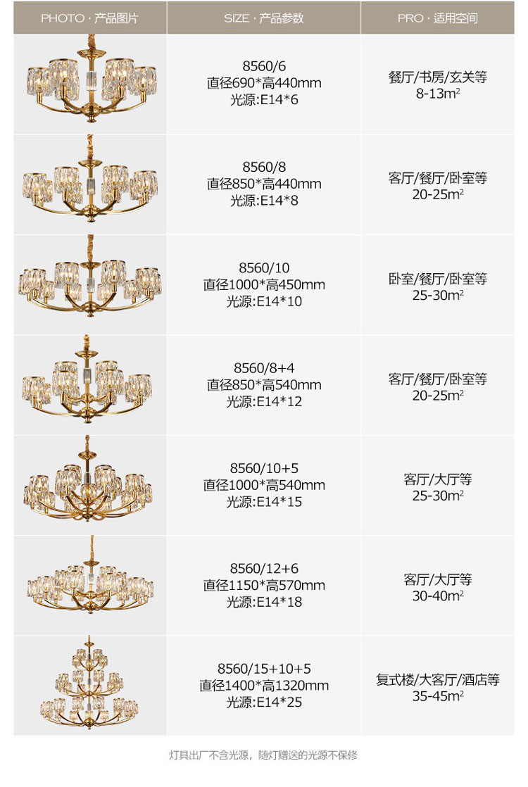 Thông số kỹ thuật của sản phẩm Đèn chùm đồng nghệ thuật trang trí nội thất DC 025
