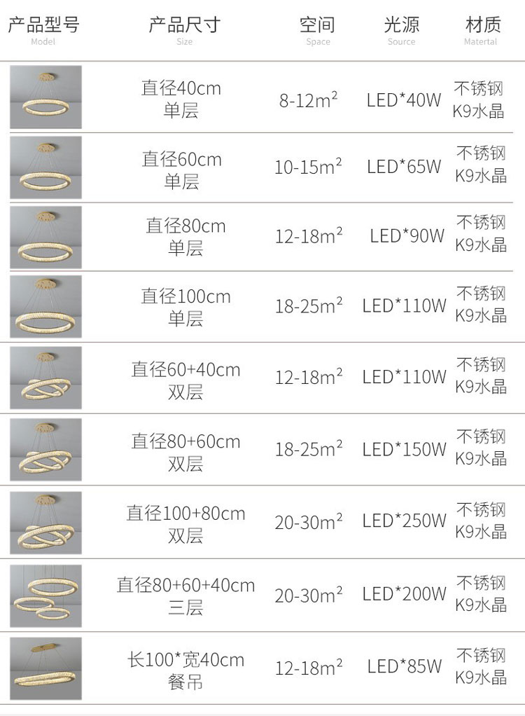 Thông số kỹ thuật của sản phẩm Đèn pha lê LED trang trí nội thất chung cư DL 004