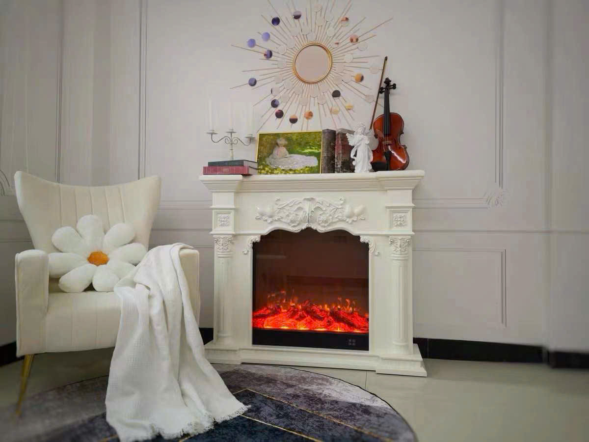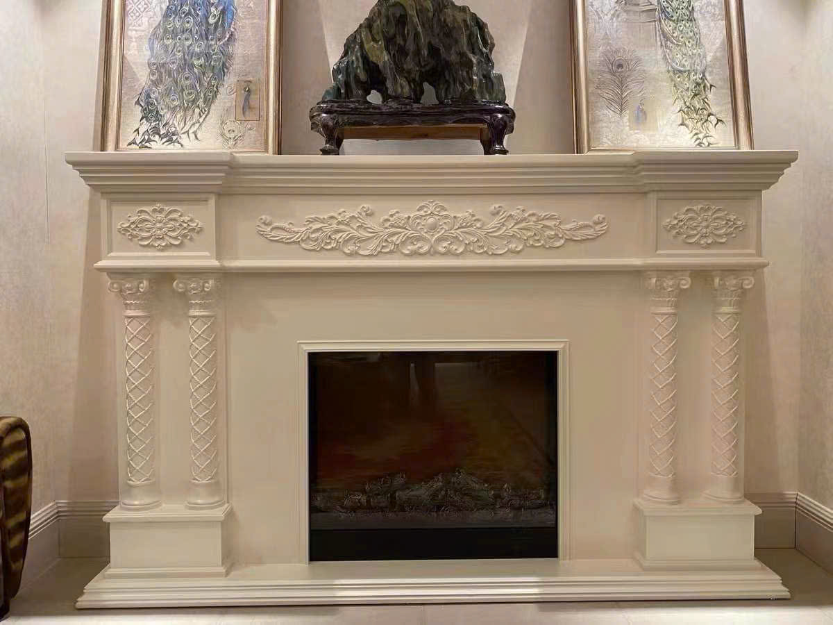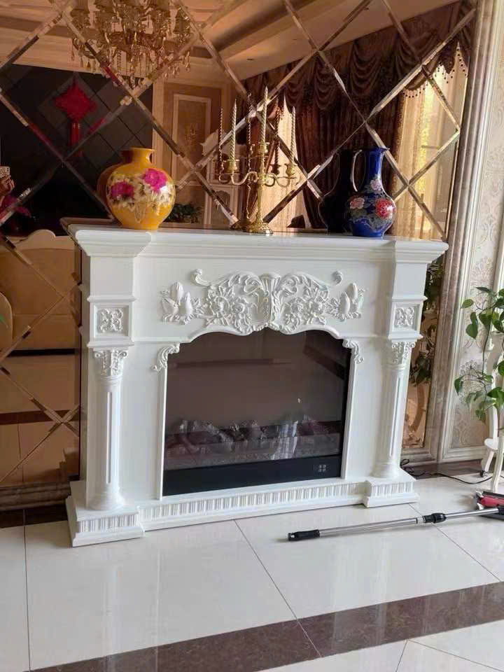 Chất liệu khung lò sưởi: gỗ MDF chạm khắc hoa văn nhựa composite