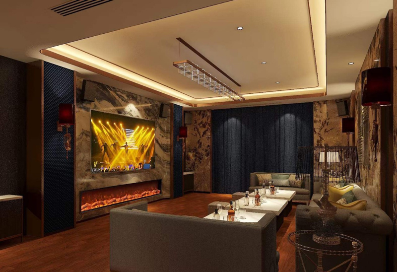 Vị trí này là bất khả thi đối với lò sưởi cổ điển vì mức độ tỏa nhiệt của nó. Nhưng với lò sưởi theo thiết kế hiện đại, mọi khả năng đều có thể. Mẫu lò sưởi giả nhỏ gọn, kích thước dài x rộng x cao vừa phải đủ để thay thế cho chiếc tủ thường được đặt bên dưới TV, tạo nên điểm nhấn cho cả không gian. Lò sưởi giả chỉ mô phỏng hình ảnh lập lòe của ngọn lửa, không tạo ra bức xạ nhiệt nên không gây tổn hại đến các thiết bị xung quanh như TV, box âm thanh,.