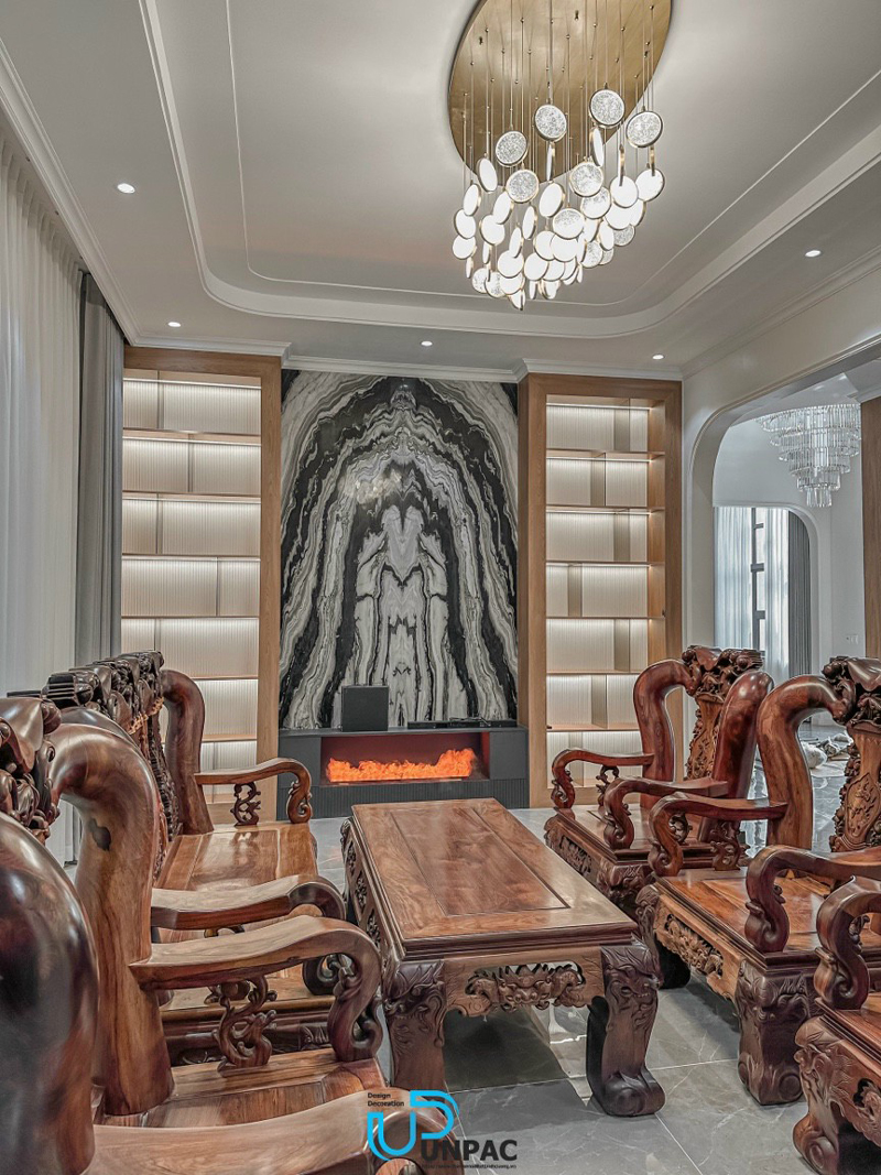 Chất liệu khung lò sưởi: gỗ MDF chạm khắc hoa văn nhựa composite